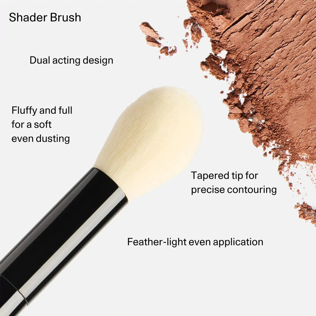 EDITOR'S REVIEW: Fara Homidi redefine el arte del bronzer con esta brocha que hace todo por ti. La Shader Brush no solo aplica el producto: lo transforma. Su forma permite difuminar un velo de color en todo el rostro o concentrar el pigmento justo donde necesitas estructura. Inspirada en la técnica personal de Fara —una mezcla entre contouring y bronzing— esta herramienta logra un efecto “sun-snatched”: cálido, definido y completamente natural.