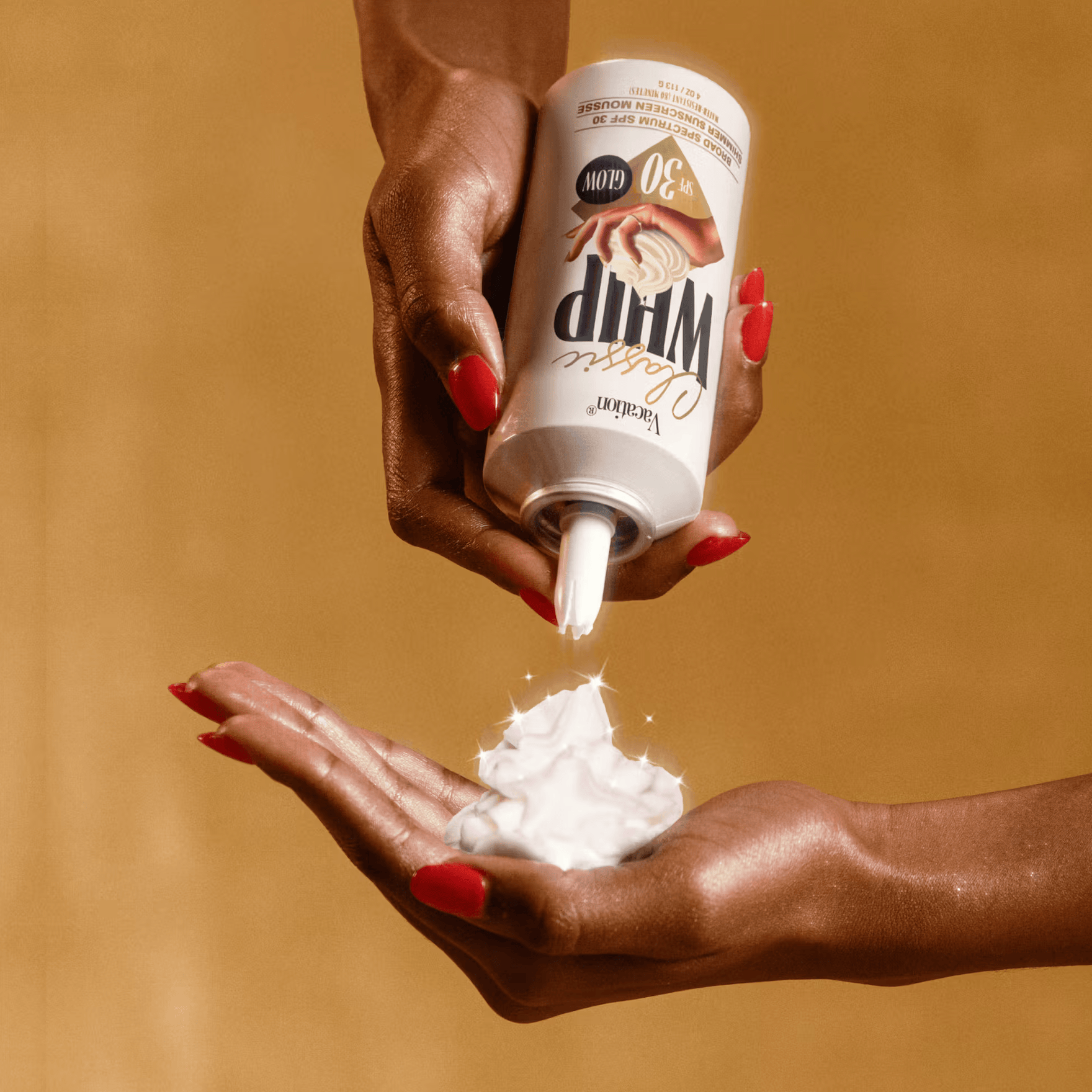 QUÉ ES: Un protector solar en mousse SPF 30, “más liviano que el aire”, ahora con un toque de brillo dorado que aporta un acabado luminoso a la piel. La fórmula mantiene la textura icónica de Vacation, divertida y fácil de aplicar.