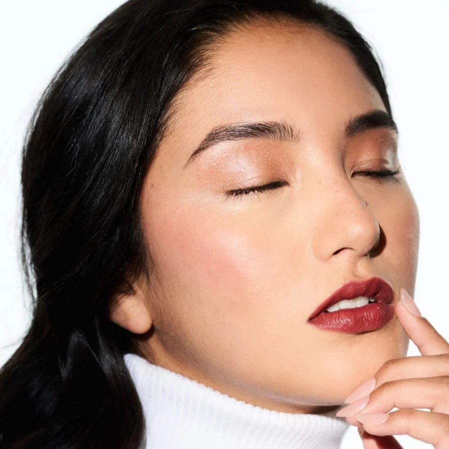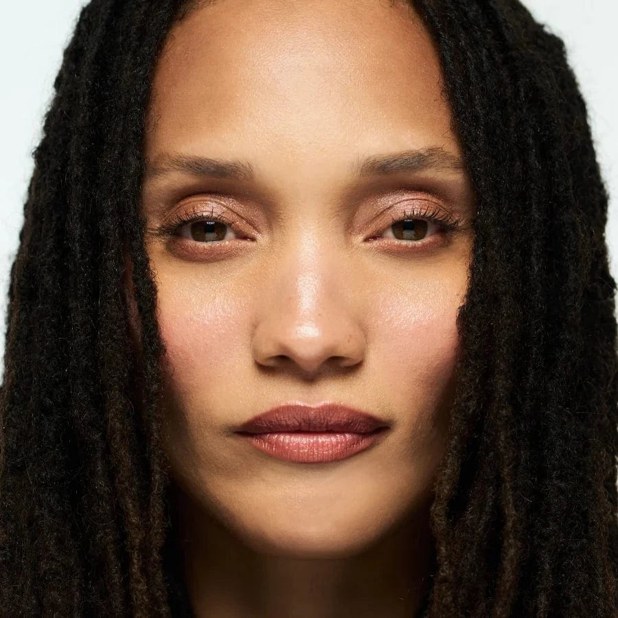 QUE: Iluminador en tono rosa tostado con un suave brillo dorado.
