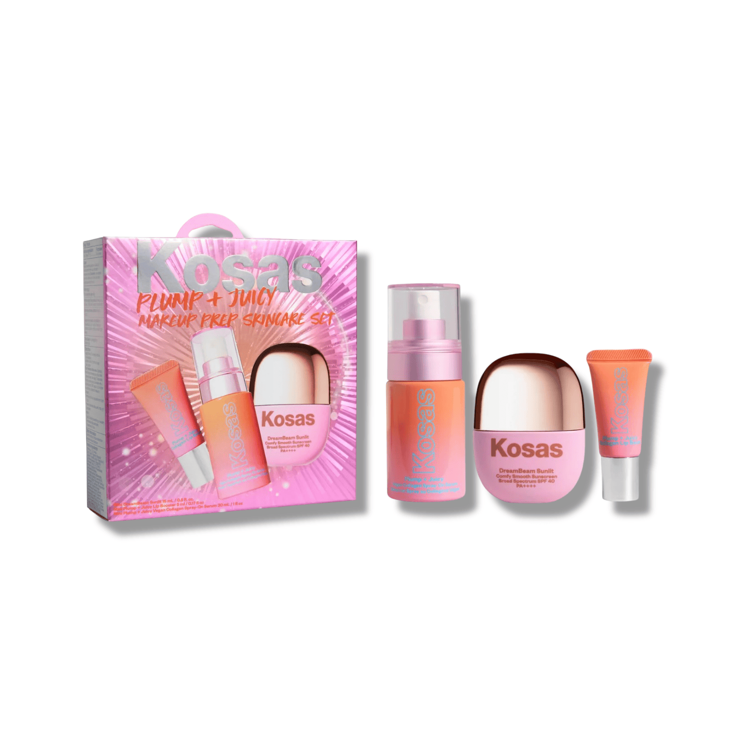 EDITOR'S REVIEW: Este set reúne los básicos para una piel con aspecto saludable desde el primer paso de tu rutina. El suero en spray con colágeno vegano aporta una sensación de hidratación y suavidad, el protector solar DreamBeam Sunlit SPF 40 crea una base protegida y radiante para el maquillaje, y el bálsamo labial Plump + Juicy deja los labios suaves y cómodos.