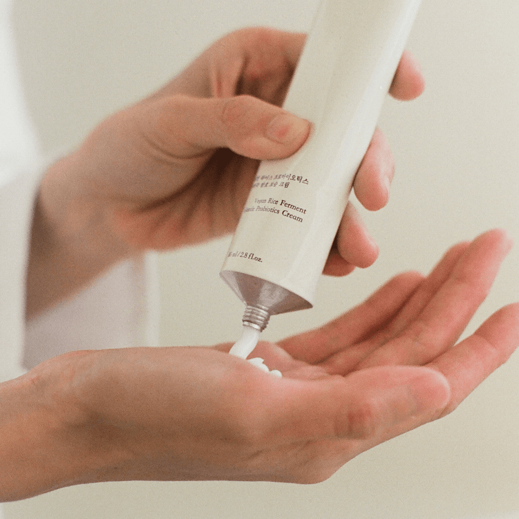QUÉ: Una crema hidratante de última generación formulada con arroz fermentado y probióticos para calmar, equilibrar y revitalizar la piel.