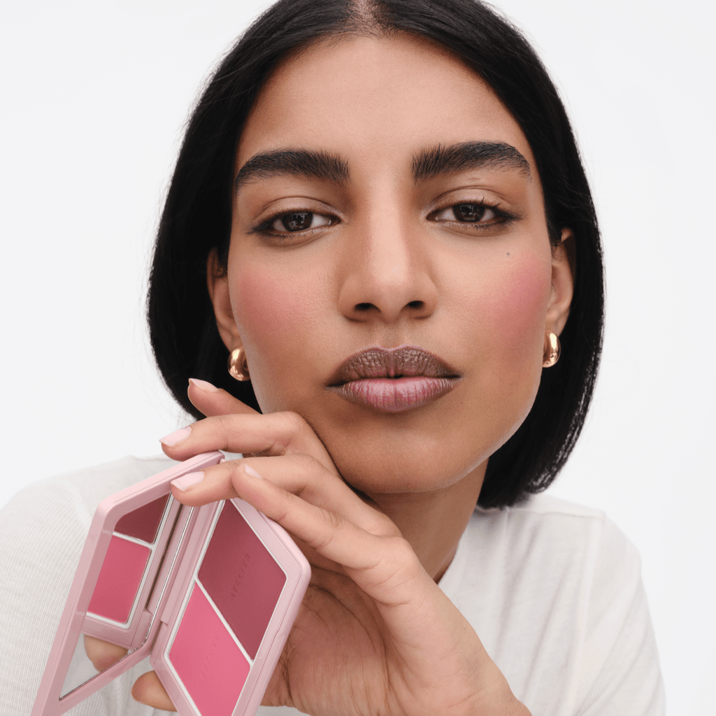 Aplicar el tono más claro sobre las mejillas en un movimiento horizontal para darle un toque de color fresco y vibrante a la piel.