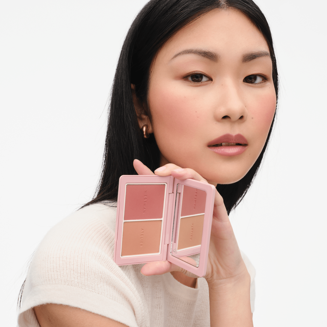 QUE: Un dúo de polvos compactos de acabado natural y luminoso para realzar el tono de la piel con un toque de frescura.